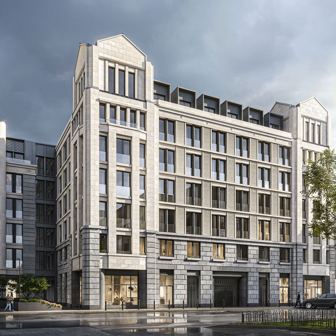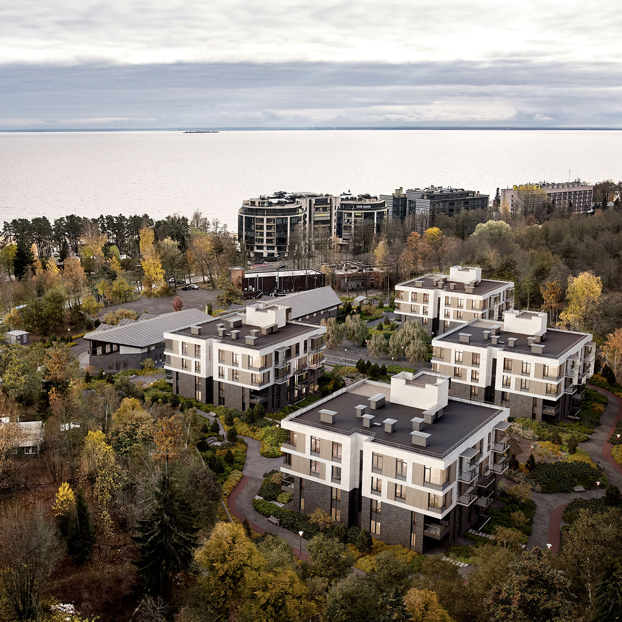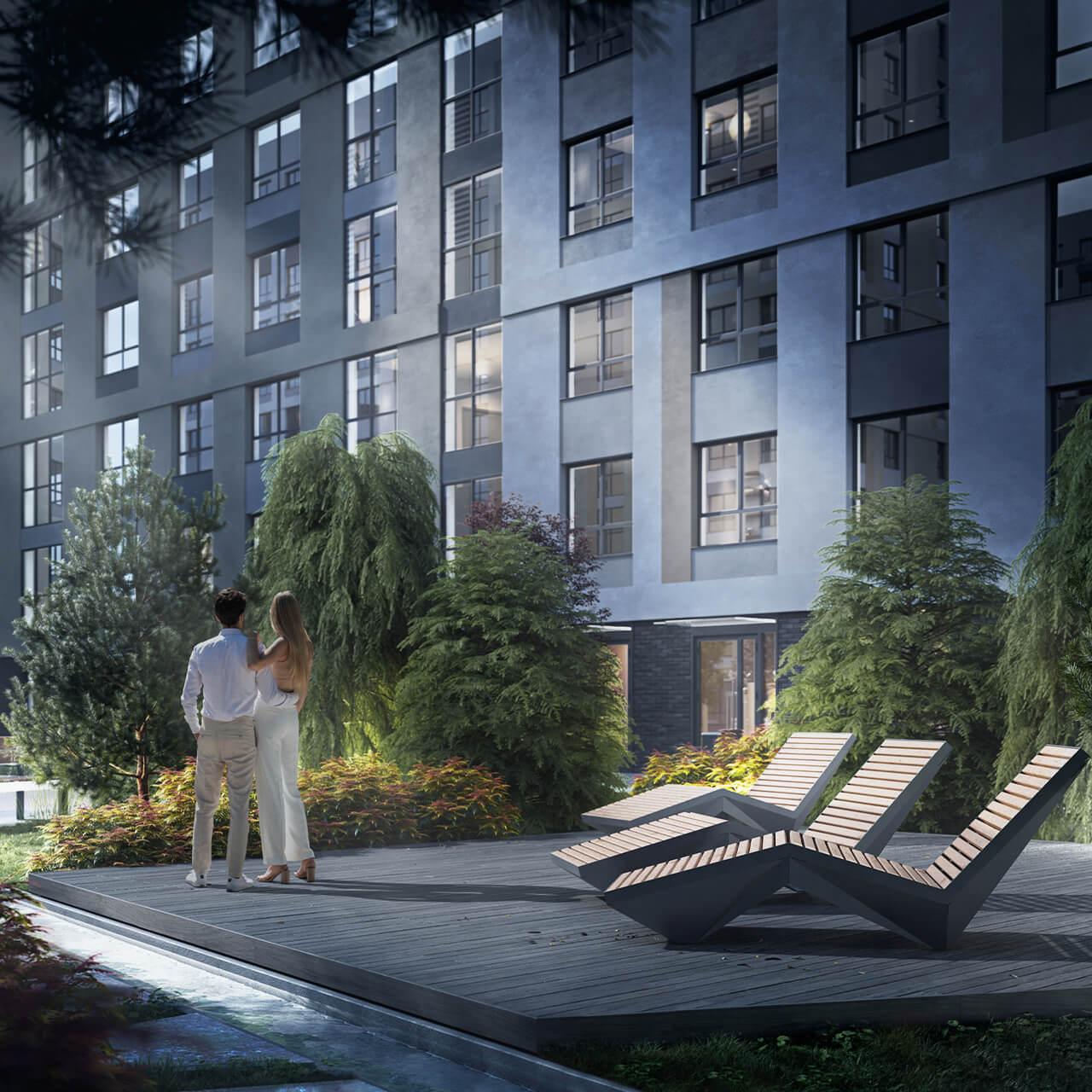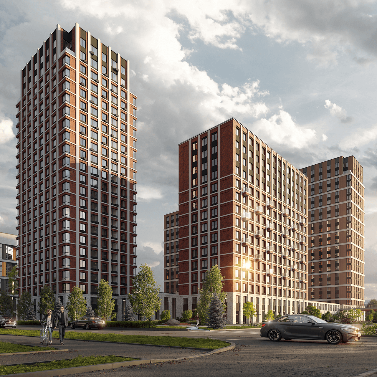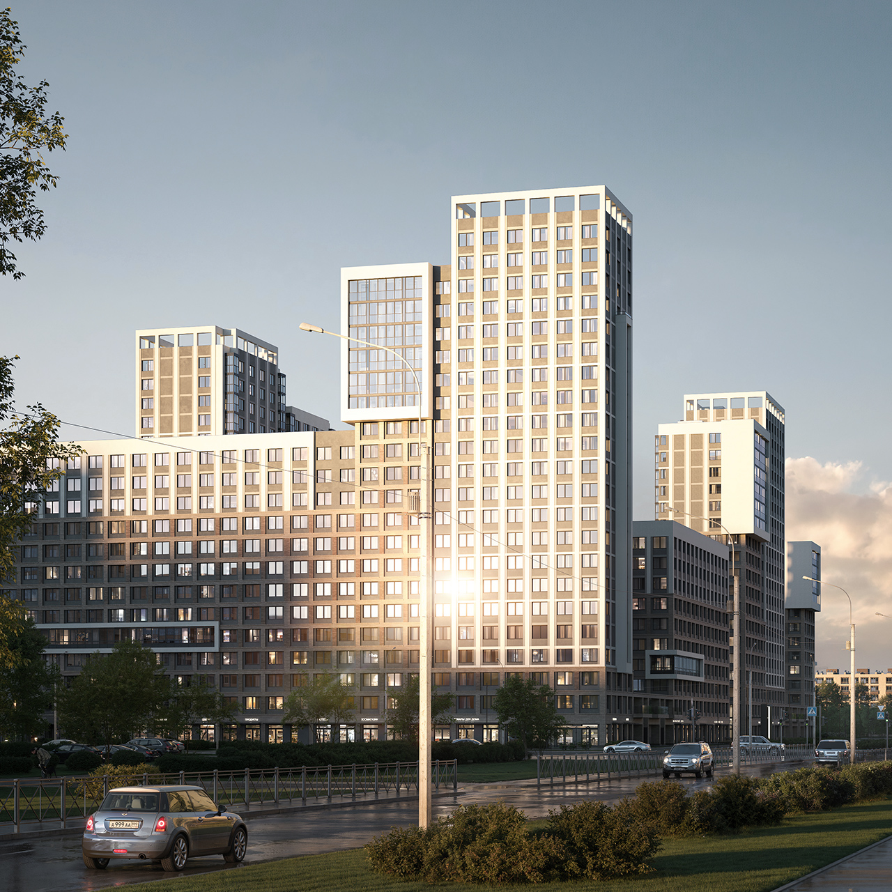 Green City состоит из трех корпусов, объединенных единой охраняемой территорией. Прямо во дворе дома располагаются муниципальные детский сад и школа. А для автомобилей построен многоуровневый отдельностоящий паркинг.