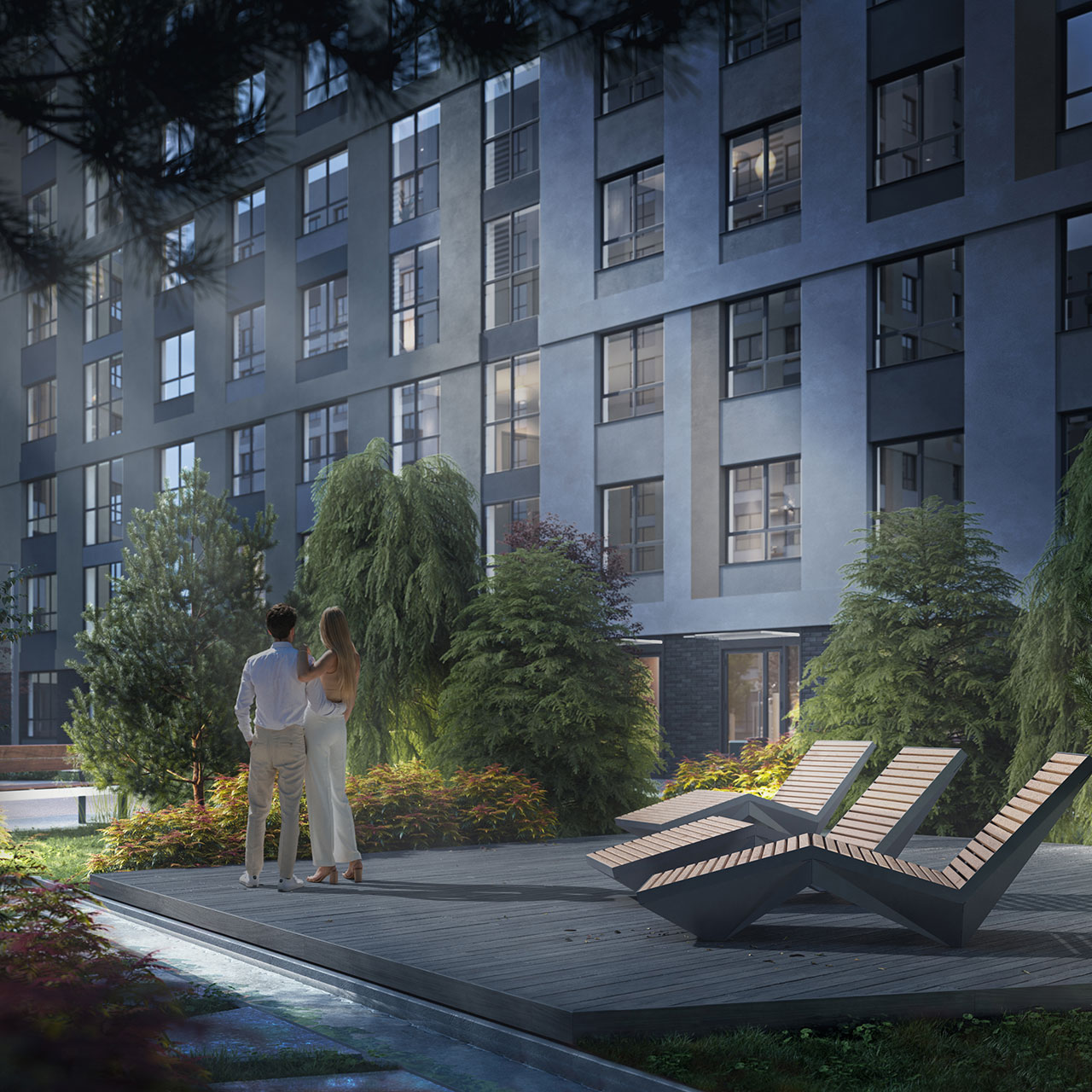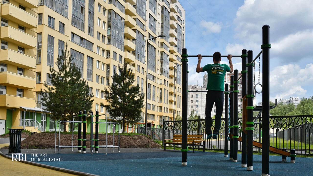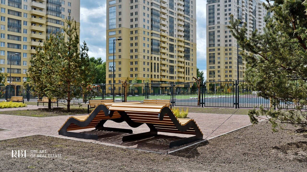 Двор утопает в зелени. Здесь есть и спортивный стадион и бульвар для прогулок, детские и спортивные площадки. Здесь даже есть специальная площадка для тренировки собак, расположенная поодаль от основного двора. А для любителей пикников оборудованы крытые беседки с мангалом для барбекю.